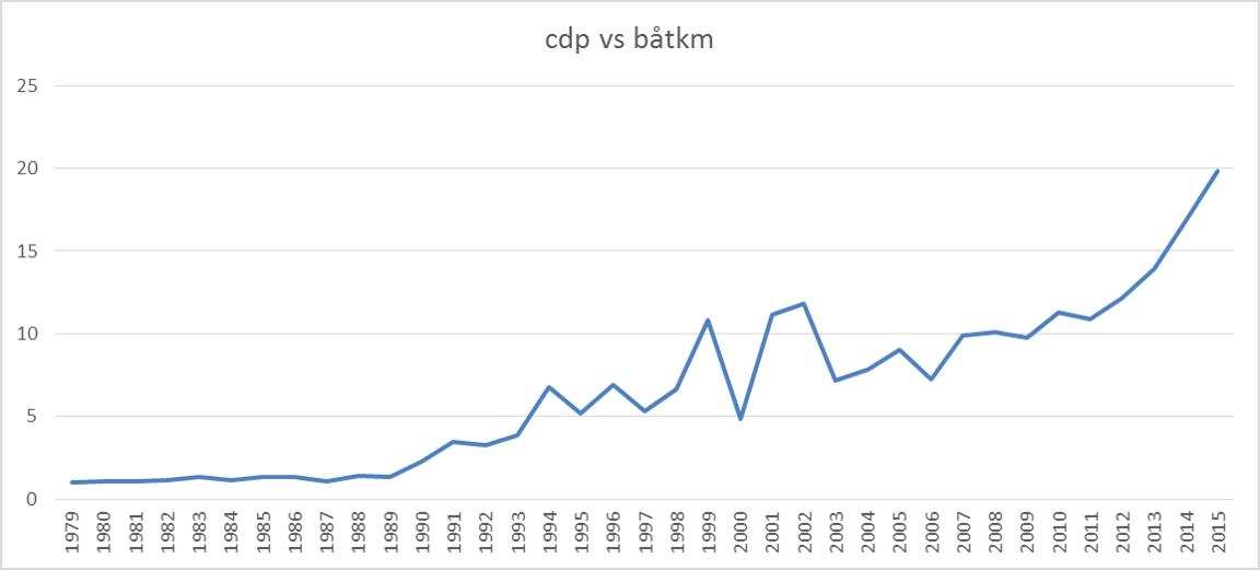 Historisk datainnsamling (cdp) versus utseilet distanse