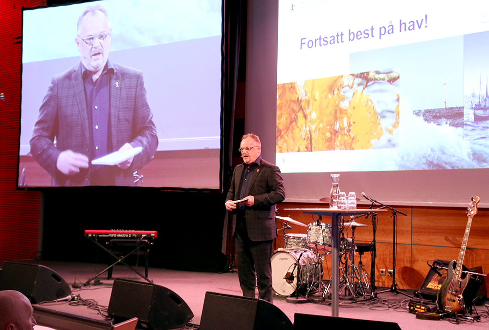 Fiskeriminister Per Sandberg (Frp) innledet konferansen. Politikeren pekte i likhet med Færøvik på de mange mulighetene i havet.