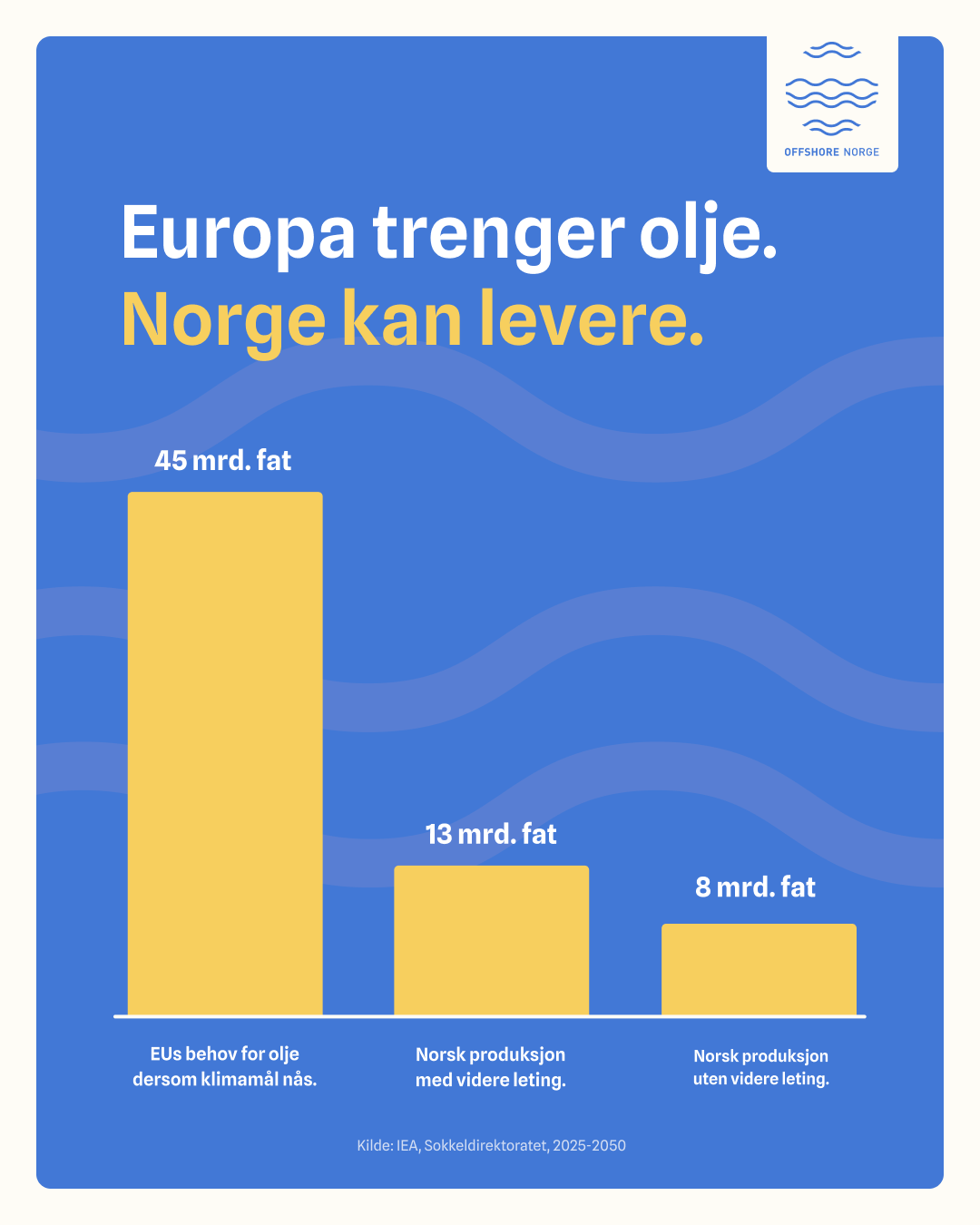 Faktisk forventer Sokkeldirektoratet at selv med videre leting, vil produksjonen være redusert med om lag 2/3 innen 2050. At vi opprettholder aktivitetsnivået på norsk sokkel sikrer derfor forutsigbarhet for arbeidsplassene, inntekter til fellesskapet og at Norge fortsetter å være en pålitelig leverandør av energi til Europa.
