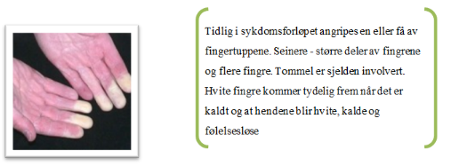 Kontakt lege eller HMS-koordinator Oppsøk lege eller HMS-koordinator hvis fingrene blir hvite, eller hvis det oppstår perioder med prikking og / eller nummenhet i fingrene.